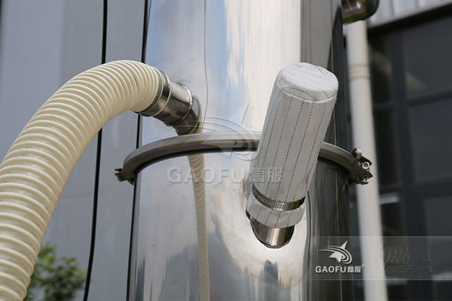 The ZKS vacuum feeder uses a vacuum pump to evacuate air, so that the inlet of the suction nozzle and the entire system are in a certain vacuum state. The powder and granular materials are sucked into the feed nozzle along with the outside air, forming a material airflow, passes through the suction pipe and reaches the hopper, where the gas and material are separated. The separated material enters the material receiving equipment. Conveying and discharging materials are completed by continuously opening and closing the pneumatic three-way valve, and the opening and closing of the pneumatic three-way valve is controlled by the control center. The ZKS vacuum feeder is equipped with a compressed air backflush device. Each time the material is discharged, the compressed air pulses backflush the filter to knock down the powder adsorbed on the filter surface so that the suction material can operate normally.