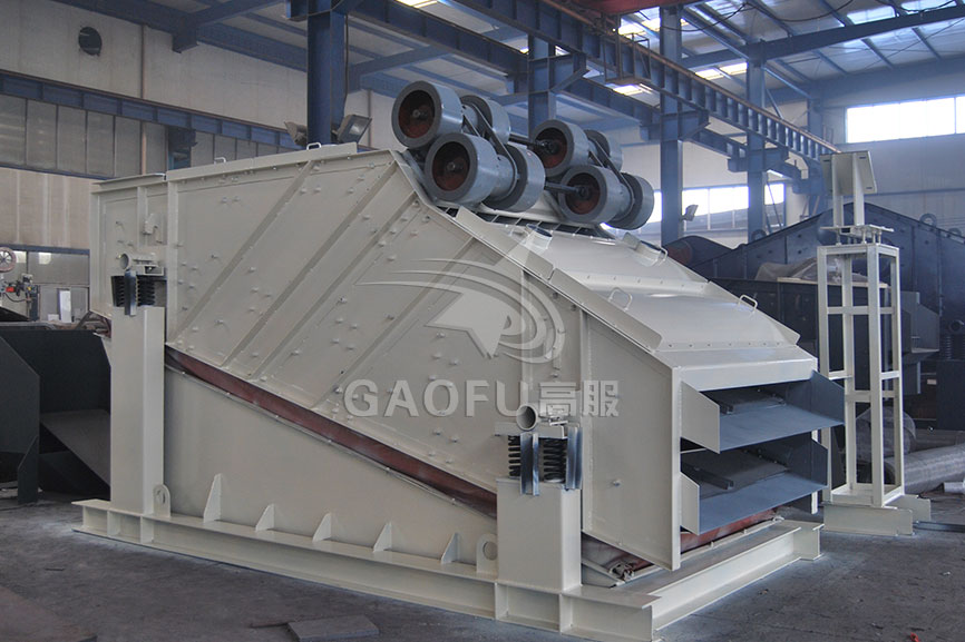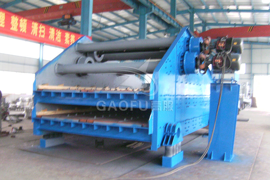 Dewatering screen adopt dual-electrode self-synchronization technology, universal eccentric block, adjustable amplitude vibrator. The machine is combined mainly by the screen box, exciter, support system and motor. The two mutually independent vibrators are respectively driven by the tape coupling to do synchronous reverse operation. The centrifugal force generated by two eccentric masses is superposed along the vibration direction and reversely counteracted, thereby forming a single vibration force along the vibration direction, making the screen box reciprocating linear motion.
